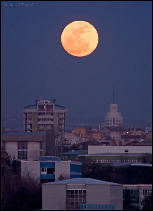 [caption id="attachment_84258" align="aligncenter" width="580" caption="Image of the Full Moon at perigee, taken from Tabuk, Kingdom of Saudi Arabia, on March 19th., 2011 at 20.05UT using a Canon 30D camera set at 1/800sec and 1000ASA. The camera was attached to an 80mm refractor of 500mm focal length and a x3 teleconverter giving an effective focal length of 1,500mm. Credit: Colin Henshaw."]