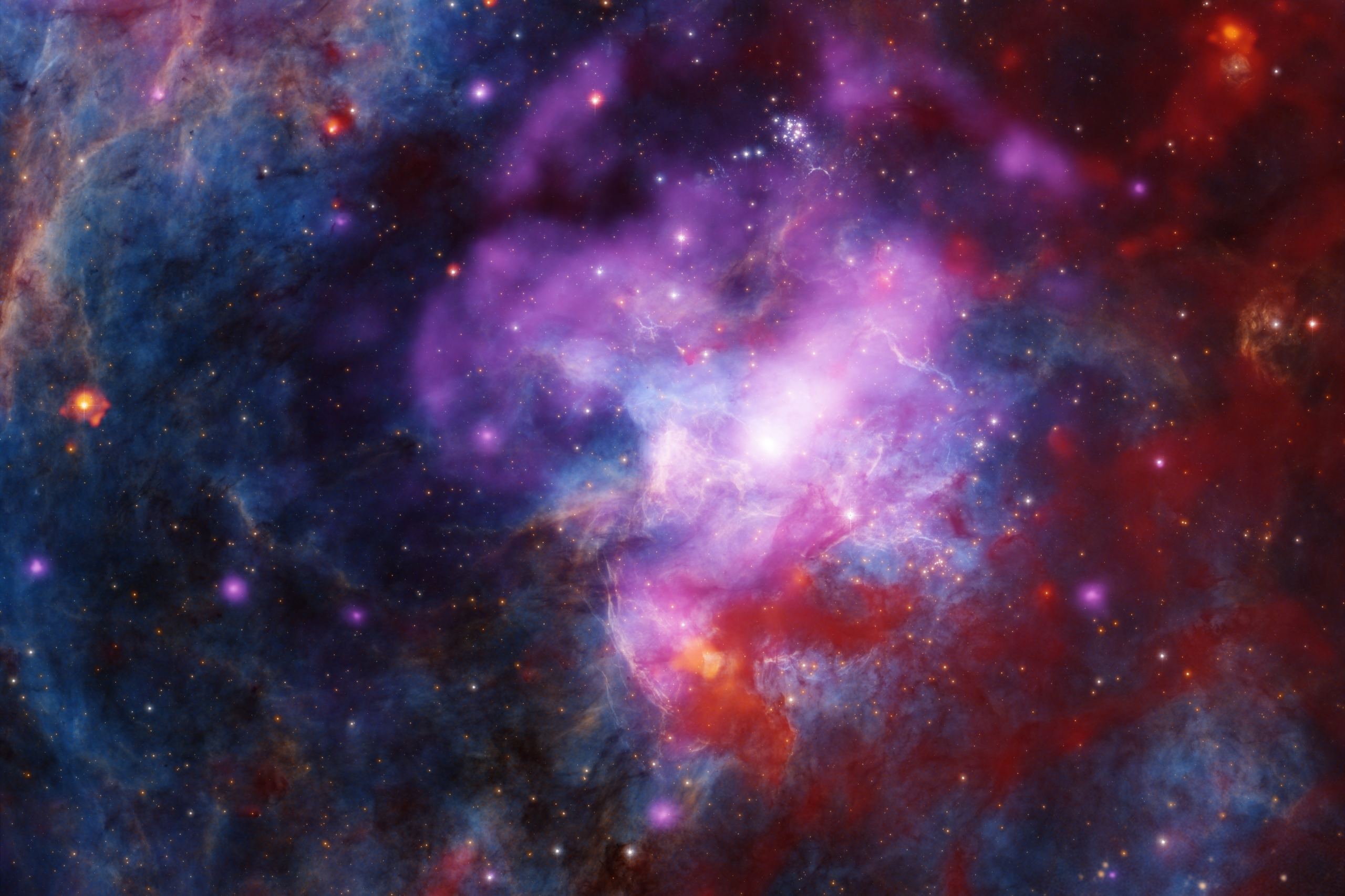 The 30 Dor B star-forming region is one of the most dramatic places in the Universe. It is located in the Large Magellanic Cloud, about 160,000 light-years from Earth, and is home to some of the most massive stars ever seen. It's been forming stars for the last 8-10 million years, the largest of which have detonated as supernovae, hurling material and seeding even more stars. A new image from Chandra has identified the remnants from at least two supernovae in the nebula.