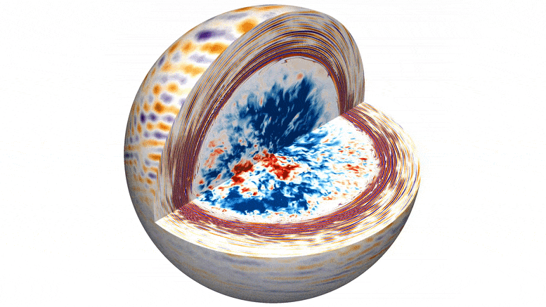 Stellar fusion happens at a star's core, where the enormous temperatures and pressures fuse hydrogen atoms into helium, releasing radiation. Waves of turbulent convection generated in the core can take hundreds of thousands of years to ripple outward through the stars' layers, finally reaching the surface. A new simulation shows waves generated deep inside stars, more massive than the Sun, make their way to the surface and affect the star's brightness.