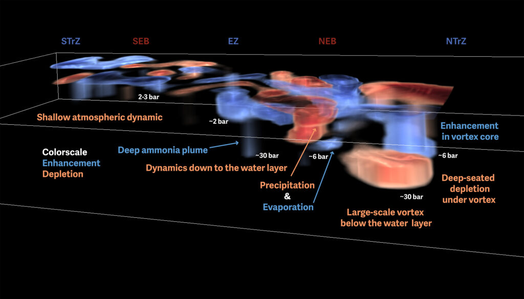 The weather gets a little wild and weird on Jupiter. How wild? Spacecraft instruments have measured strong winds, tracked fierce lightning, and found huge methane plume storms rising from deep beneath the clouds. How weird? Think: mushballs raining down like hailstones. They're made of ammonia and water encased in a water ice shell. According to planetary scientists, these mushballs plunge through the Jovian atmosphere. What's more, they probably form on the other gas and ice giants, too.