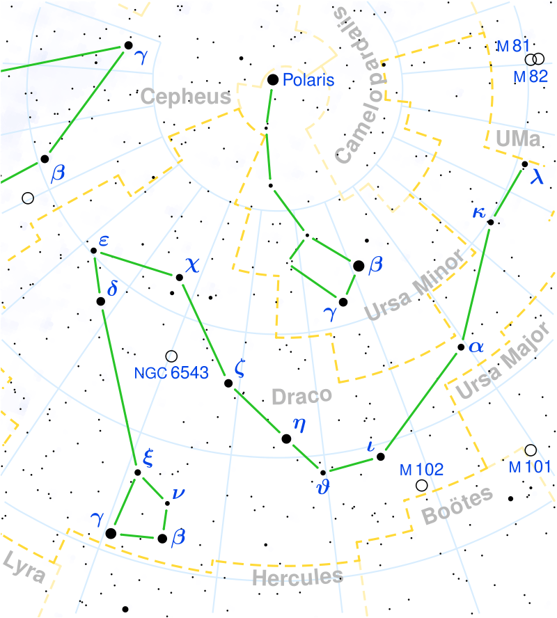 Located in the northern hemisphere, between the two "dippers", is the Draco constellation - one of the 48 compiled by Ptolemy and one of the 88 recognized by the IAU.