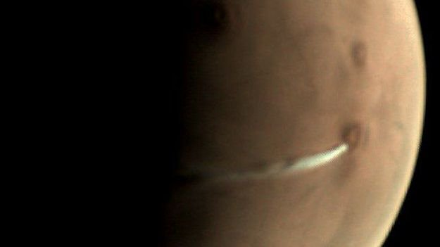 This 1500km long cloud on Mars is formed by the size and shape of Arsia Mons, but it's not related to any volcanic activity in this long-dead volcano.