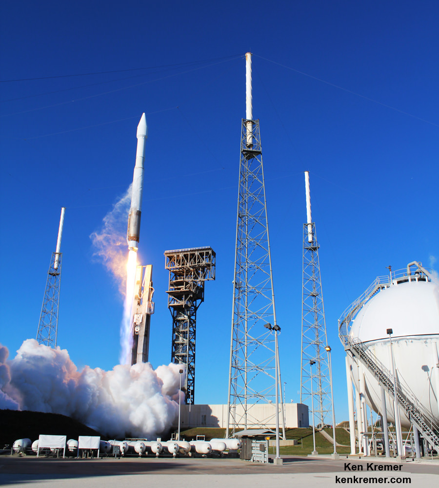 CAPE CANAVERAL AIR FORCE STATION - Despite howling winds and unseasonably frigid temperatures in the 'sunshine state', United Launch Alliance's workhorse Atlas V rocket successfully blasted off this morning, Friday, Feb 5, and delivered the final GPS satellite in the IIF series to orbit for the US Air Force.